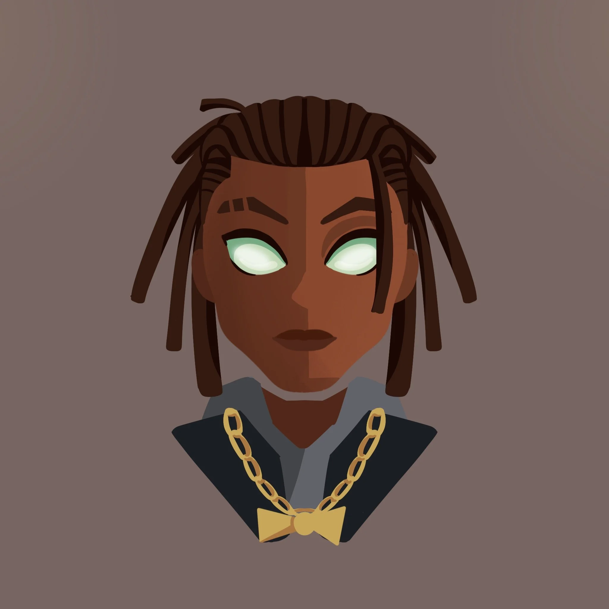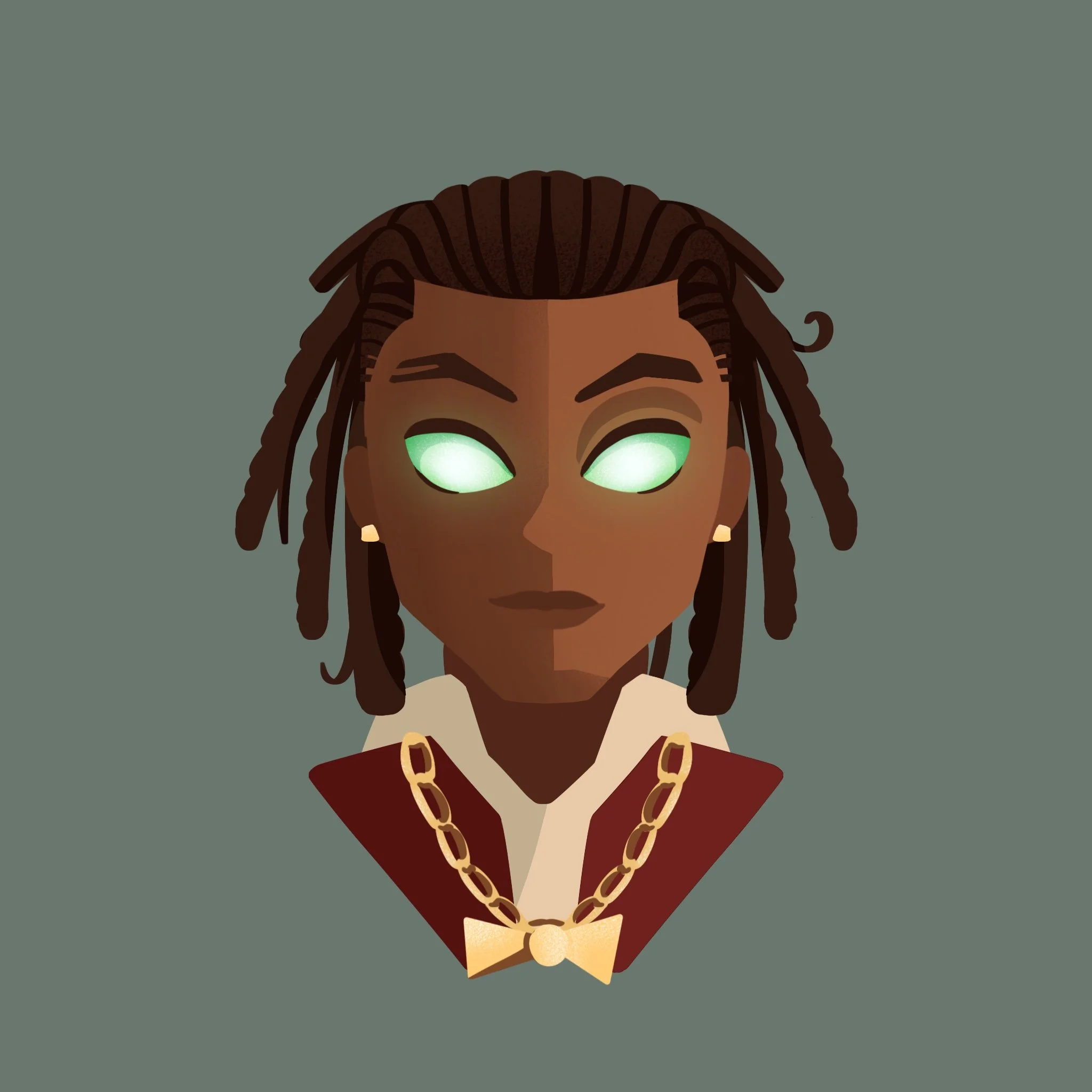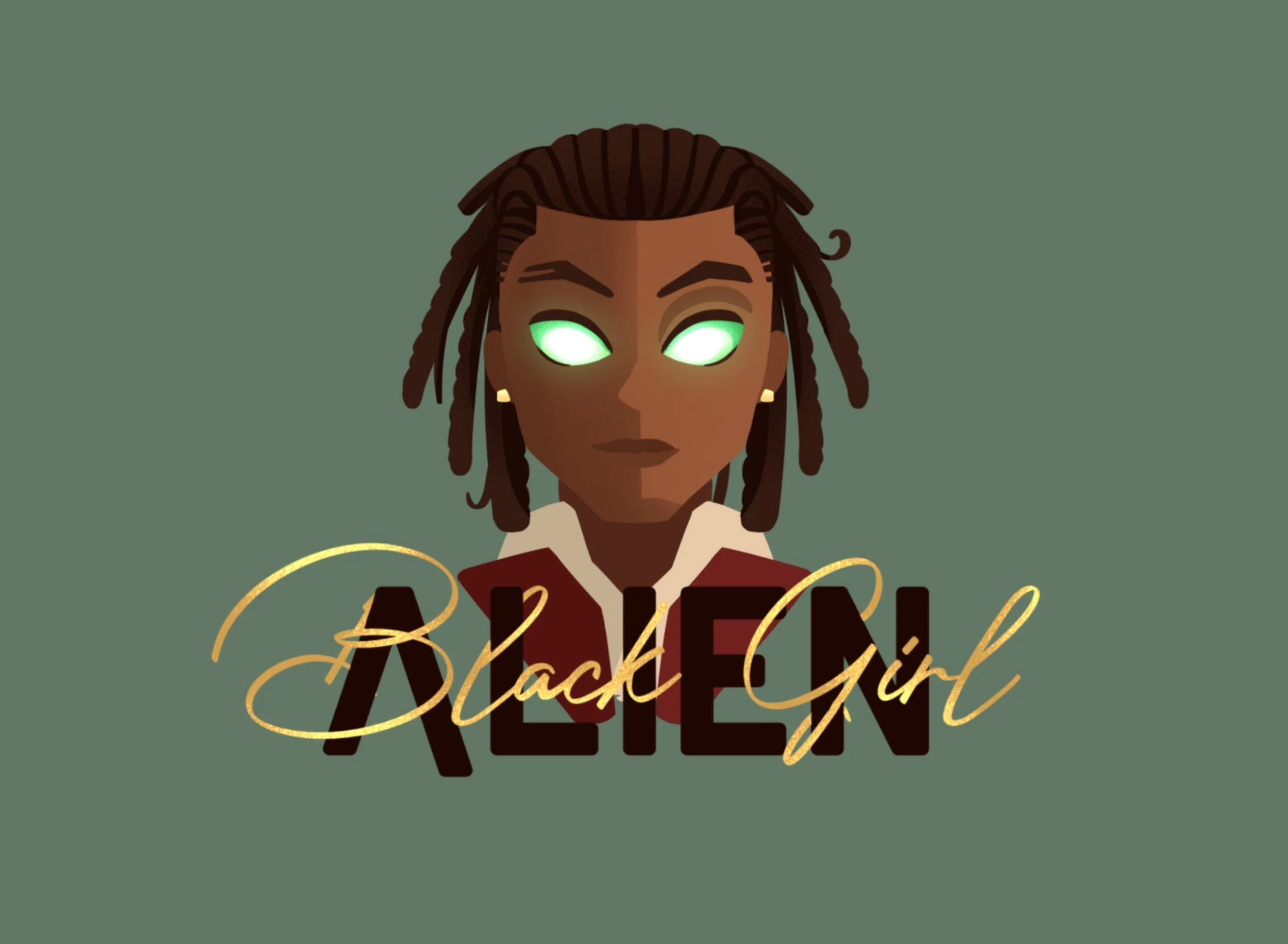 The "Black Girl Alien" artwork was created for Kisha Quesada Turner (KQT). She is a professor and linguistic justice trainer, and this artwork was created as part of her personal branding. The glowing green eyes and gold accents honor Black identity, while the phrase "Black Girl" over the bold word "ALIEN" symbolizes cultural pride and individuality.