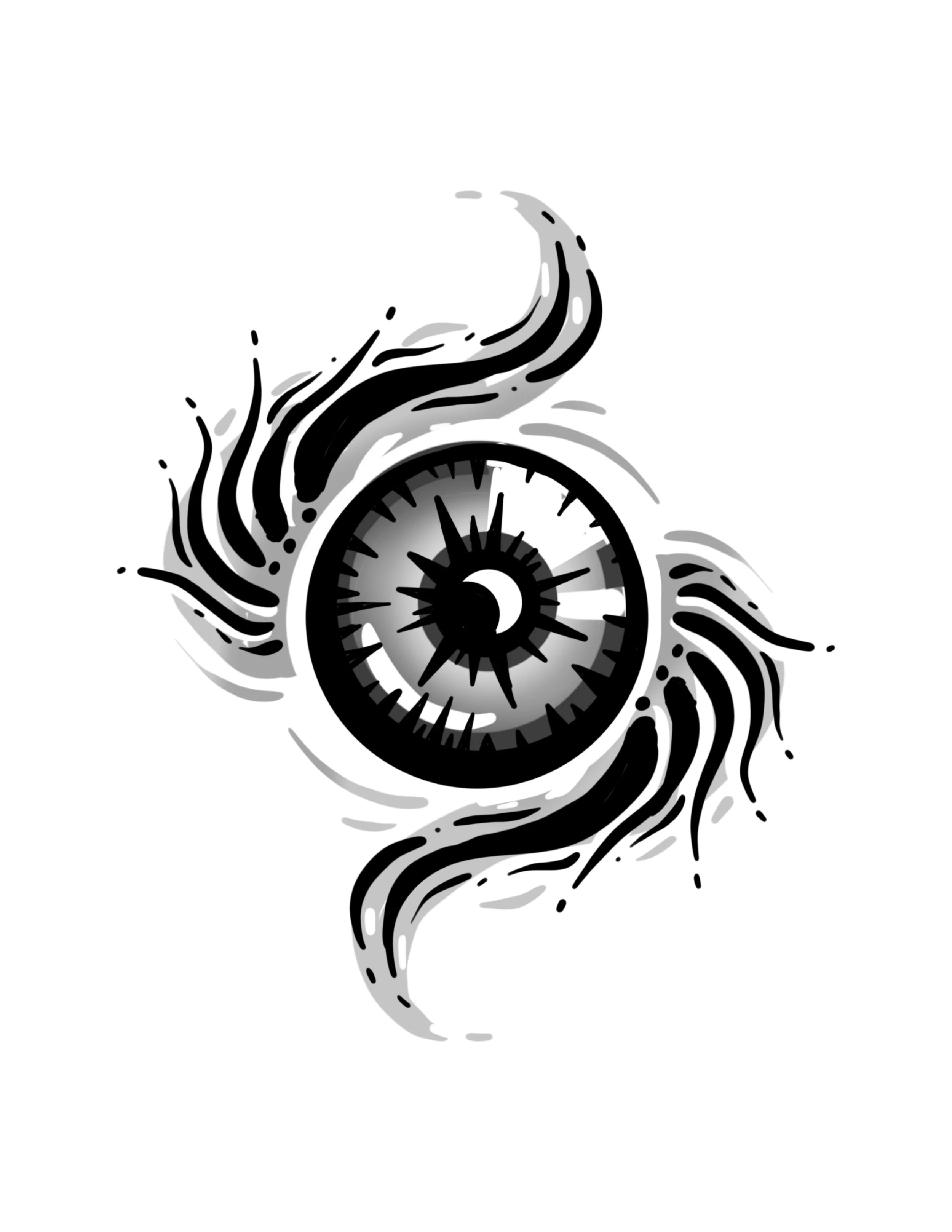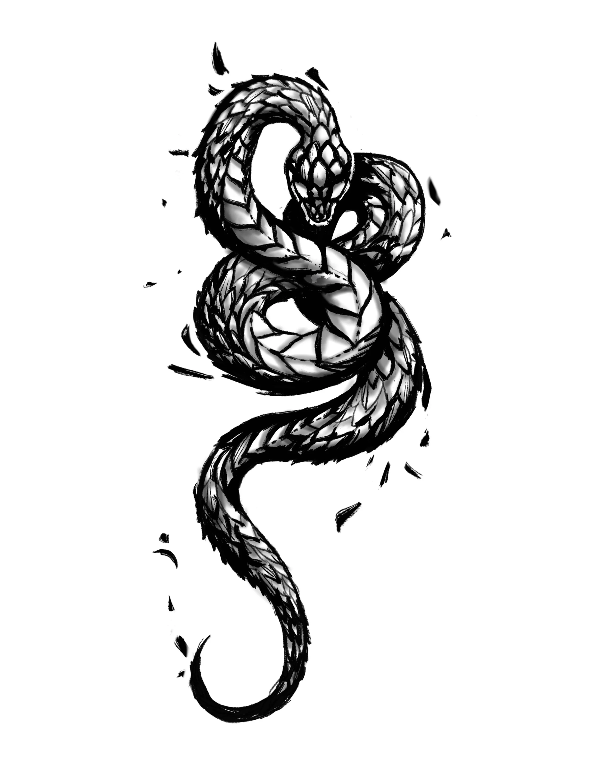 Black and grey tattoos capture powerful imagery with depth and detail. A shedding snake represents transformation, while a Japanese samurai mask symbolizes honor and resilience. An eye with a rotating pattern evokes insight and awareness, drawing the viewer into an endless gaze.