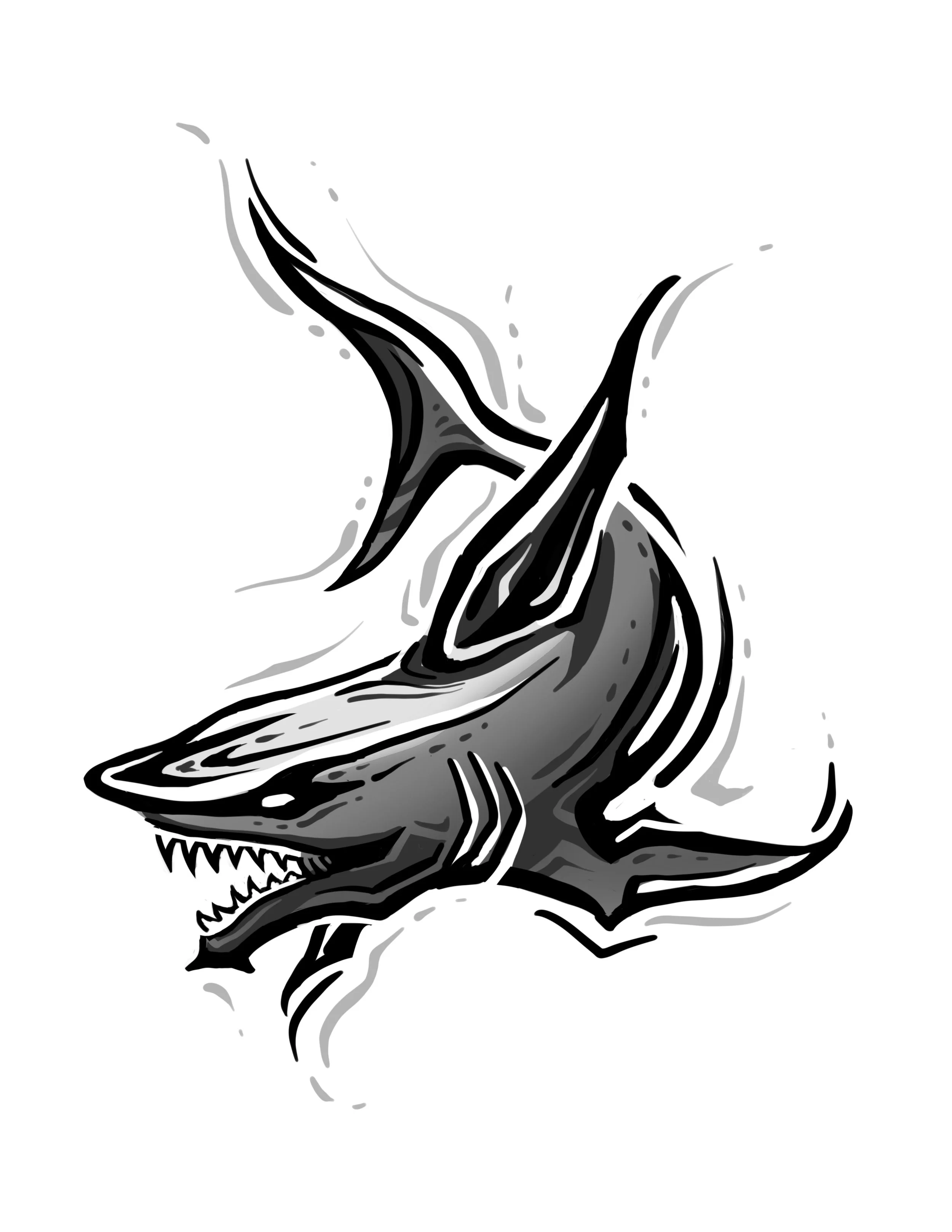 A bold tattoo design drawing from tribal influences, capturing the streamlined and aggressive nature of a shark. The lines and patterns flow with the shark's form, blending traditional motifs with a modern edge, symbolizing strength, resilience, and power.